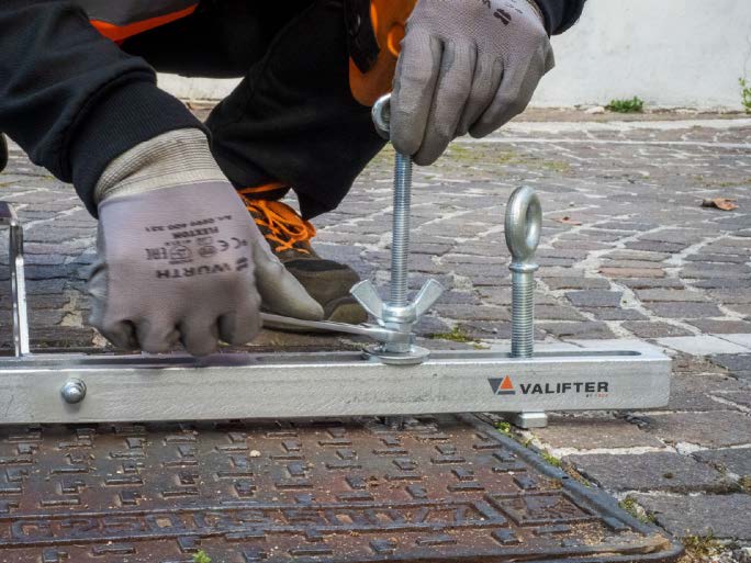 Si una tapa de alcantarilla está bloqueada, la operación de elevación debe ir precedida por la